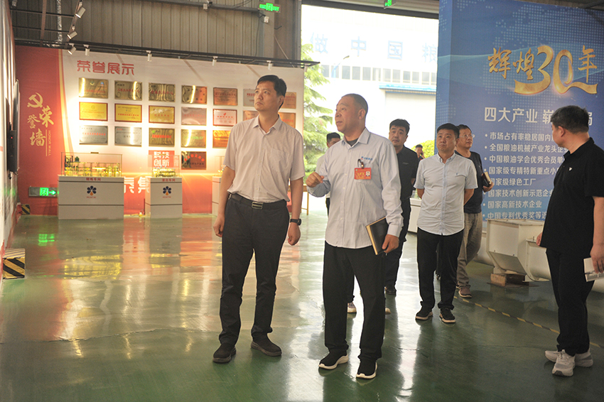 在華泰智能裝備集團的生產(chǎn)車間,王軍華一行詳細察看了生產(chǎn)線運行情況,了解了企業(yè)產(chǎn)品制造流程和質(zhì)量控制體系。隨后,他們參觀了產(chǎn)品展示車間、糧油食品機械創(chuàng)新研發(fā)中心。在糧油食品機械創(chuàng)新研發(fā)中心,王軍華詳細詢問了企業(yè)在生產(chǎn)經(jīng)營過程中有沒有困難,在人才引進、技術(shù)研發(fā)、產(chǎn)品創(chuàng)新方面的成果和進展。
