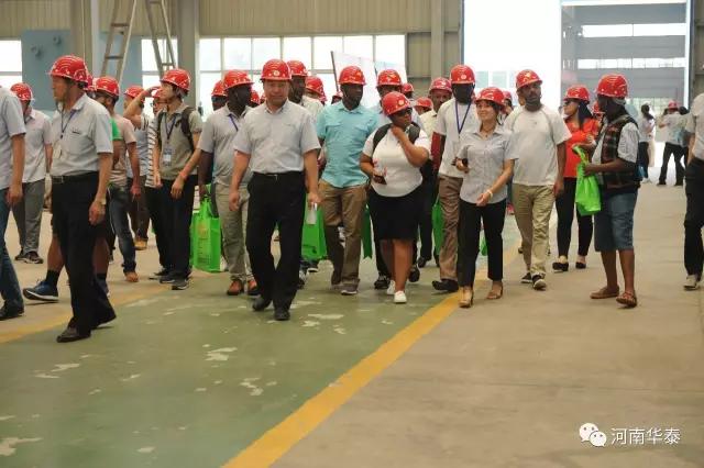 發展中國家糧油食品加工廠經理培訓考察團一行在公司副總張國馥、閆子黨、薛錦峰、閆豐和國際事業部總經理張冉等的陪同下,參觀了設備生產車間。考察團通過此次的參觀調研,不僅在專業技術領域有所收獲,而且在合作交流方面也有拓展,并對華泰機械表達了肯定與贊賞,對今后的合作留下了良好的基礎。