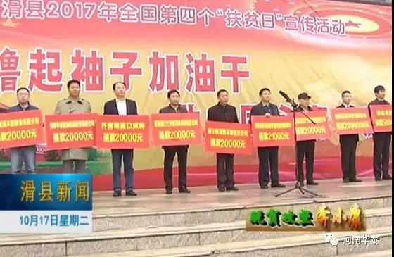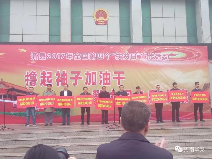河南省人大代表、中國糧油學會油脂分會副會長、河南華泰糧油機械股份有限公司董事長閆子鵬,河南銀河科技通訊有限公司董事長尚志深,滑縣宏達房地產開發有限責任公司董事長劉國臣等企業上臺捐款,為扶貧濟困貢獻自己的力量!